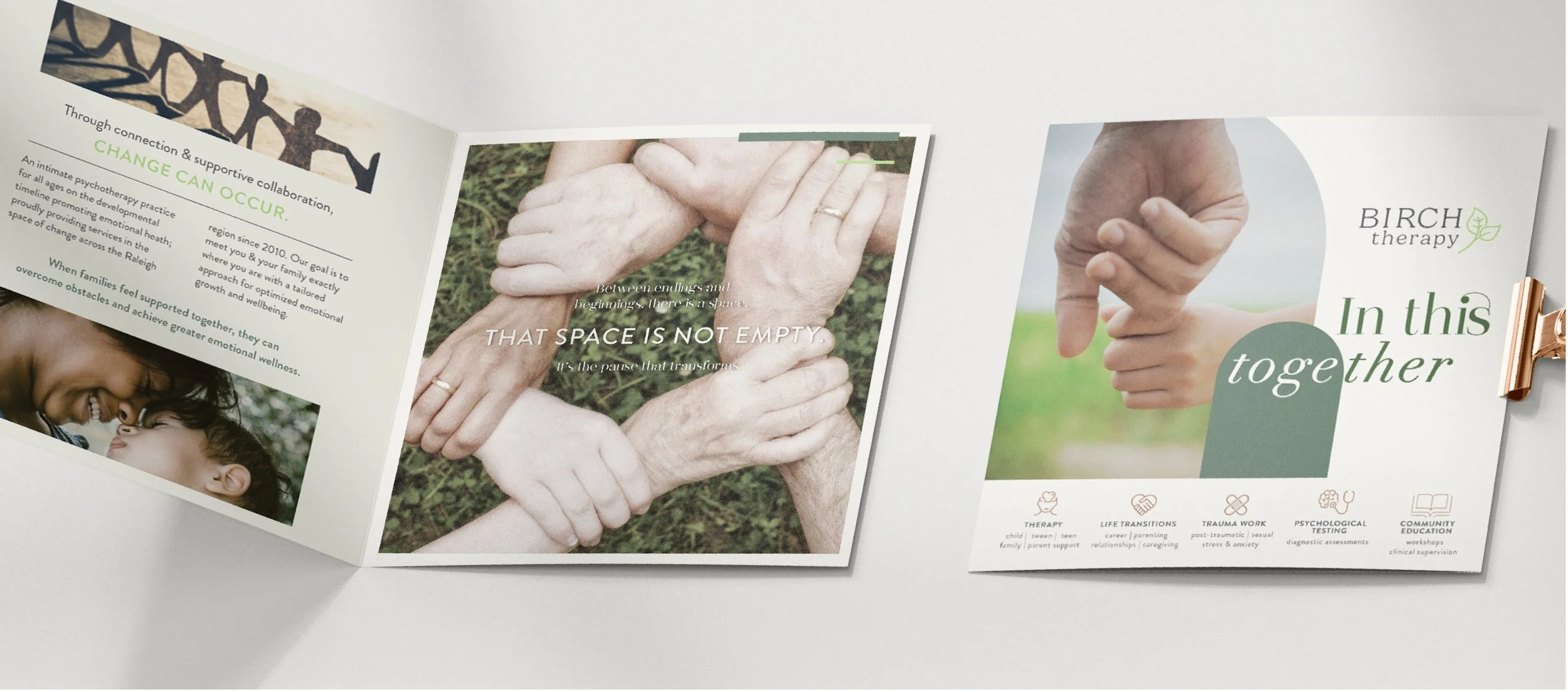 IDEATE: Conceptualize Birch Therapy’s mission to support individuals through key life transitions with tailored support, creating a nurturing
